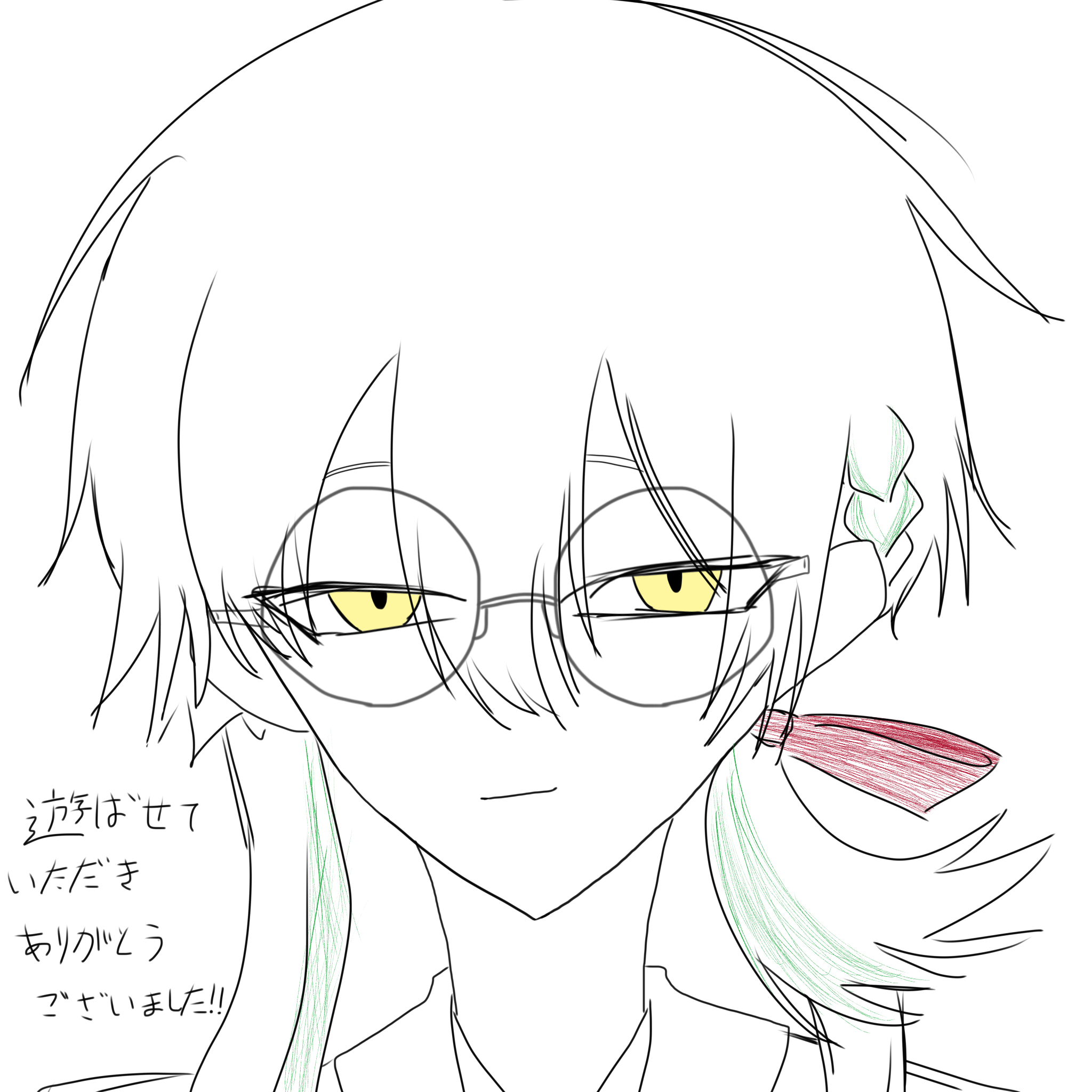花嫁隠─ハナヨメカクシ─遊ばせていただきました!! 何から何まで最高すぎてもう、もう語彙力がどっか飛んでっちゃいましたよ!!@ネタバレ開始 特に好きだったのは縁を切るENDです!捻れて歪んでしまったかくし様がもう最高すぎて……「足…」とか言われた時にはもう横転(する勢い)でもはや喜んじゃいました!!(変人でごめんなさい) 縁を切らないENDでは2人ほのぼの夫婦生活で心癒され仮初の夫婦ENDは少し仄暗くてこれもまた最高でした……!!! ヤンデレもほのぼのも大好きなのでEND回収の時感情が荒ぶりまくっててもしかしたらかくし様に引かれてしまったかもしれません笑 @ネタバレ終了 色塗りやらなんやら全然できてませんしなんならかなり下手ですが良かったらファンアートをお収め下さい! -