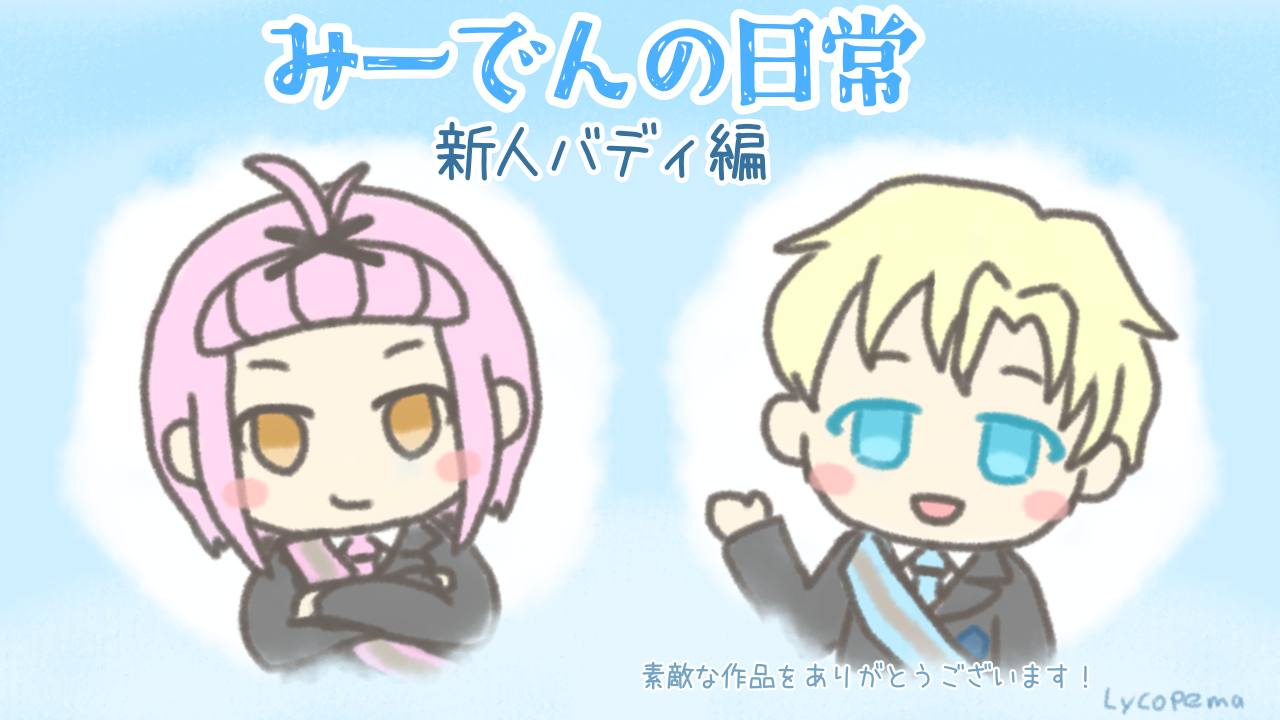 みーでんの日常 22歳バディ編(※通常フォームから投稿してしまったのでフェス専用フォームから再投稿失礼します!) 本編プレイ中なので、こちらもプレイさせて頂きました! @ネタバレ開始 本編ではシリアスだったり、すれ違っているようなシーンが多かったので、こちらではなんだかんだ仲良しな所が見れてほっこりしました。 アン君は、まだ隠された裏がありそうですね⁉︎ 陽気で可愛く見えて、コーヒーはブラック派な所とか所々ビターな一面が垣間見えます! いやしかし、やっぱり、部屋散らかってて片付けてもらってるのとか可愛いです♡ すざくんは質素倹約なシンプル和風なお部屋で笑ってしまいました! 弟想いなの素敵ですね! アン君が弟ぽくなるのもまた良いです♡ 私、2人のデュクシ!バリア!のやり取りが、バチャフェスの時から好きでしてね… バチャフェス時は何度2人の間に入ってお喋りさせたことか笑 @ネタバレ終了 先輩バディなのに本当にかわいらしくてですね… これからも見守っていたい2人です★ この度は素晴らしい作品をありがとうございました!! -