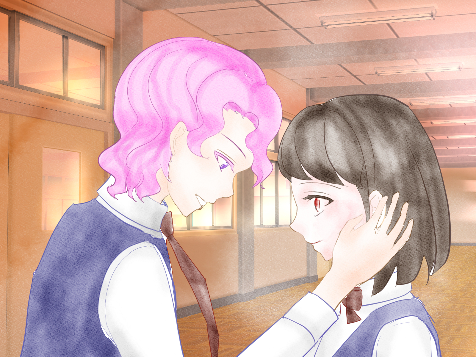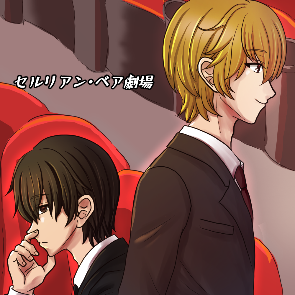 セルリアン・ベア劇場どこか懐かしい子供向けの人形劇のようなイメージビジュアルとは打って変わり、愉快で目に優しくない動物達と一緒にハッピーエンドを目指すお話です! がっ!仕事に思い悩んだり、コミュニケーションが上手くいかない現代人にプレイしてほしい深いお話でした……。 @ネタバレ開始 初っ端から、まるでインフルの時に見る夢のような奇抜な点滅と愉快に動き回る動物達…そしてモノローグで流れていた狸や亀はいずこに??と、最初は混乱しつつも、制作者さんの作品がこんなドストレートに終わる訳がない!!(安定の信頼)と思い突き進んでいく事、はや1/4……ファンシーな導入からは想像出来ない現代社会の闇がダイレクトに突き刺してきて、これこれぇ!!となりました🤣 以下、ENDや区切り別に感想を語らせて下さい。 (区切りを迎える度に追記しているため、前半の記述は勘違いを多量に含んでいます) 【BAD1】 もしかして、ベア君って仲間内から嫌われてる…? けどラビット君からは謎の好意を向けられてるのがなんか怖いんですが!? そして足ー!足が遅い…!! この動きでダンスがずれてるレベルに抑えられてたの、逆に凄くありませんか!?(そこ?) 【HAPPY1】 タイトルに何だか見覚えが…げふげふっ!! 目先の楽しさよりも安全が第一優先! フロッグ君の勇気ある行動に乾杯ですっ!🍻 【BAD2】 みんなにトラウマを植え付けてるのって、毎回ベア君じゃありません…? もしかしなくてもなんですが、ベア君が介入しなければそもそもハピエンにしかならなかったのでは?? そしてさり気なく差し込まれるコナ〇ネタに笑いました(笑いごとではない) 【HAPPY2】 メタいよラビット君www そして告白がなんかちょっと…なんかちょっとくどい…!!! 【BAD3】 やっぱりベア君があかん事になるとBADに行く流れだ…! っていうか目を見開いた顔怖くないです!? ……一番スクワール君がまともに見えるのは自分だけなんでしょうか…。 【HAPPY3】 爆発オチなんてさいてー!みたいな流れなのに良い感じにまとまった!? 友情パワー…?(宇宙猫) 【バッドエンド】 やっぱりベア君、嫌われてるよな…? 【引き留める】 お互いに好きなのはわかったけど、君らは多分一緒に居ない方が楽しく過ごせると思うなぁ!? とりあえず別居のお友達からでよろしくお願いしますっ!! 【見送る】 お互いに大事だったからこそ、視野が狭くなり過ぎて空回ってたんですね…。 「シグマ・ソラオ」の主人公名から始まり、「空」という言葉に色々な意味が込められていて凄いなと思いながらストーリーを読み進めていました。 (お恥ずかしながらセルリアンの意味を知らなかったので、クリア後に検索したのですが…「爽やかさと力強さを持ち、空間の解放感や創造性を表現する言葉として使われている」との表記を見て、胸がいっぱいになりました) 【おまけ】 よかったああああ! 志熊さんにとって宇佐見さんは救いだったけど、逆は違うのかな…って少ししょんぼりしてたので、宇佐見さん側から見ても志熊さんが心の拠り所だったと知れて、本当に良かったです…! けど、だからこそ一緒に居るとお互いに心を砕きすぎて破滅に向かうしかなくなるんですよね…。 優しくて繊細で、お互いの事が大好きなのに離れるしかないって考えると切ないですね…。 最初の「俺達って似てますね」の意味を知れた瞬間、宇佐見さんの中で「セルリアン」としての志熊さんを感じ取ったのかなと、心がキュっとなりました。 そしてファニー……虚勢と見栄の果てにたどり着いた宇佐見さんの外郭部分だと思うと、とっても切ないですね。 2人が一緒に過す未来には破滅しかない上に、志熊さんの中には色んな不穏分子が引き続き滞在中ですが、人間って誰しもそんなもんですからね! 依存や劣等感を拒絶するのではなく、受け入れた上でお互いにとって最善の選択を選べた2人は、とても強い人なんだろうなと私は思います。 それに、2人があのタイミングで出会えた事や、一緒に暮らす事になったのは今後の人生を歩んでいく上で必要な事だったんでしょうね…。 そして全てが終わった後も、タイトル画面で志熊さんが宇佐見さんの様子をずっと気にしていたのが印象的でした。 職場も住居も変わってしまいましたが、たまには近況報告がてらご飯を食べに行くぐらいの気の置けない友達として、これからも交流してくれていたらいいな…と、思っています。 FAは、色んなしがらみから解放されたあとの宇佐見さんと、同じ場所に根を張りながらも周りを気に掛ける事が出来るようになった志熊さんをイメージして描かせていただきました。 @ネタバレ終了 素敵な作品をありがとうございます! -
