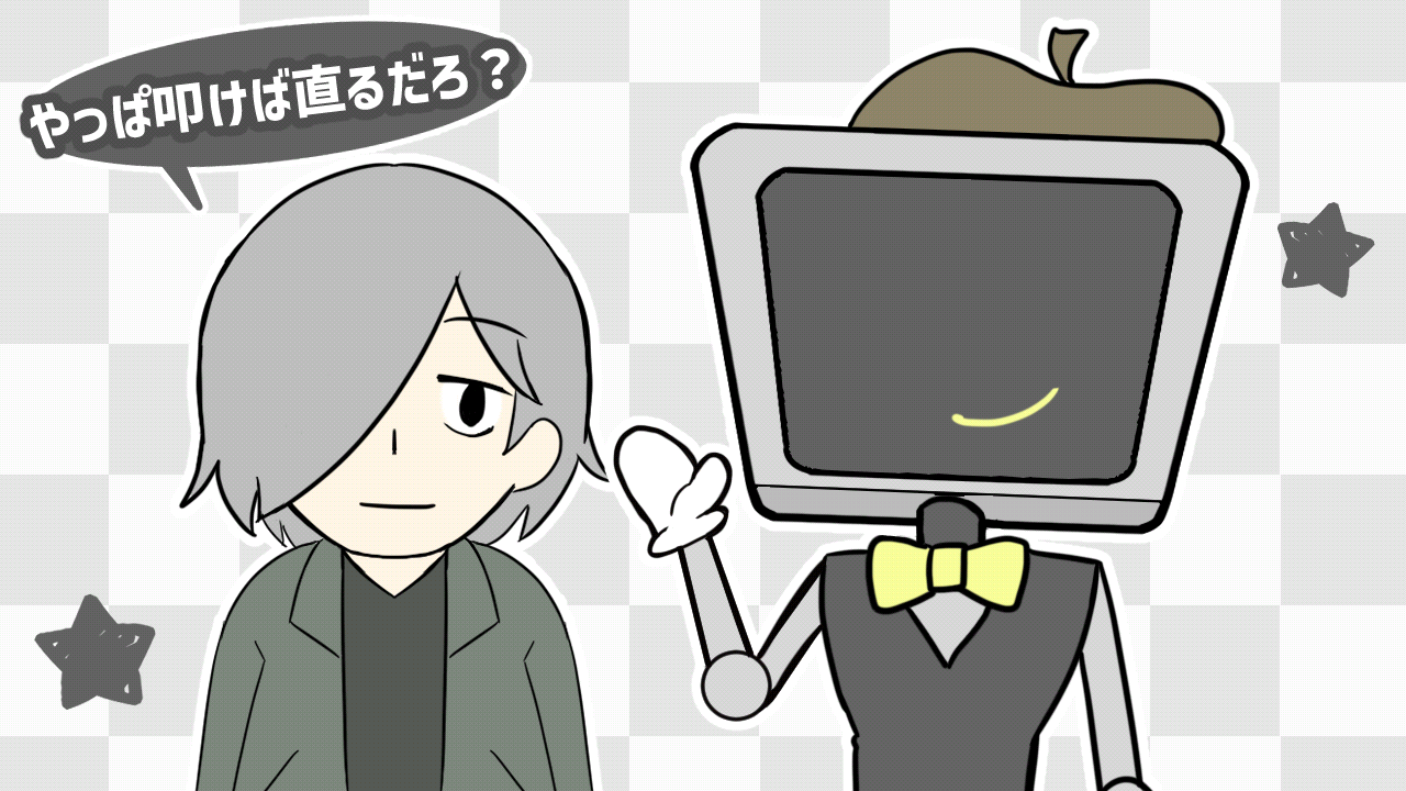 やっぱ叩けば直るだろ?直りますか・・・? これ叩きすぎて壊しませんか?大丈夫ですか・・・? と自分のパワーに怯えつつ、めちゃ叩きました。 @ネタバレ開始 良かったー!直ったー!と思ったら原因ソコ!? 確かにメーター横に書いてありましたね。策士・・・! @ネタバレ終了 ほっこり楽しい作品でした。 素敵な時間を有難うございました! -