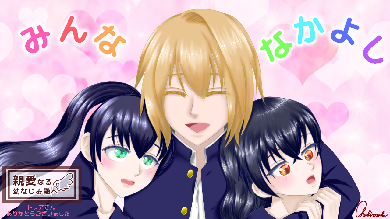 親愛なる幼なじみ殿へフェスに3作品公開おめでとうございます!! Xでお見掛けしてすごいな~!!と思っていました!^^ ずっとお気に入りに入れさせていただいていたのですが、ついにまず1つ遊ばせていただきました!! @ネタバレ開始 女の子主導のお話なんですね! かわいらしい…/// 伊織くんとひち代ちゃんをくっつけてプレイボーイの汚名を返上する作戦…。 いいの?恋歌ちゃん…!焦 幼なじみっていうのは複雑ですね; というか『#妄想乙女ゲー攻略対象化計画 - サポートキャラ編 -』のデジャブが…;; 恋t…恋歌ちゃんには幸せになってほしい…!という気持ちと、ひち代ちゃんもハッピーエンドになってほしい気持ちに揺れました。 トレアさんの初作から感想に進歩がないのは本当にすみません;汗 どうしても同じこと思っちゃうんですよね…。^^; 万年金欠!?笑っ 伊織君は恋歌ちゃんのこといつも心配していたので幼なじみ以上恋人未満みたいな仲良しさんなのかな?と思って見守っていました。 どうなるのかなとちょっと心配でしたが、エンドが2つ見られてよかったです! 学生生活の中でのほんわかした「恋心未満」のようなストーリーにリアルを感じました/// 中高生ってこういう繊細な心の動きに毎日翻弄されている感じですよね~^^ これも成長の1つなんだな~(誰目線)とあたたかく見守れました(2度目)。笑 画面が切り替わるところも可愛らしくて好きです! アニメみたいな!^^ 結構前にクリアしてバッヂも2種類取得していたのですが、FAを描かせていただきたいのに場面を迷いに迷ってコメントが遅くなってしまいすみませんでした; m(__)m 伊織くんみたいなタイプの子いたな…と遠い昔を一瞬思いだしたりして微笑ましかったです。笑 どんなルートでもみんな仲良しなのがよかったなー!と思いました! ありがとうございました!! @ネタバレ終了 すっかり忘れていた時代を思い起こさせてもらえたあたたかい作品でした! 素敵な作品をどうもありがとうございました!! -