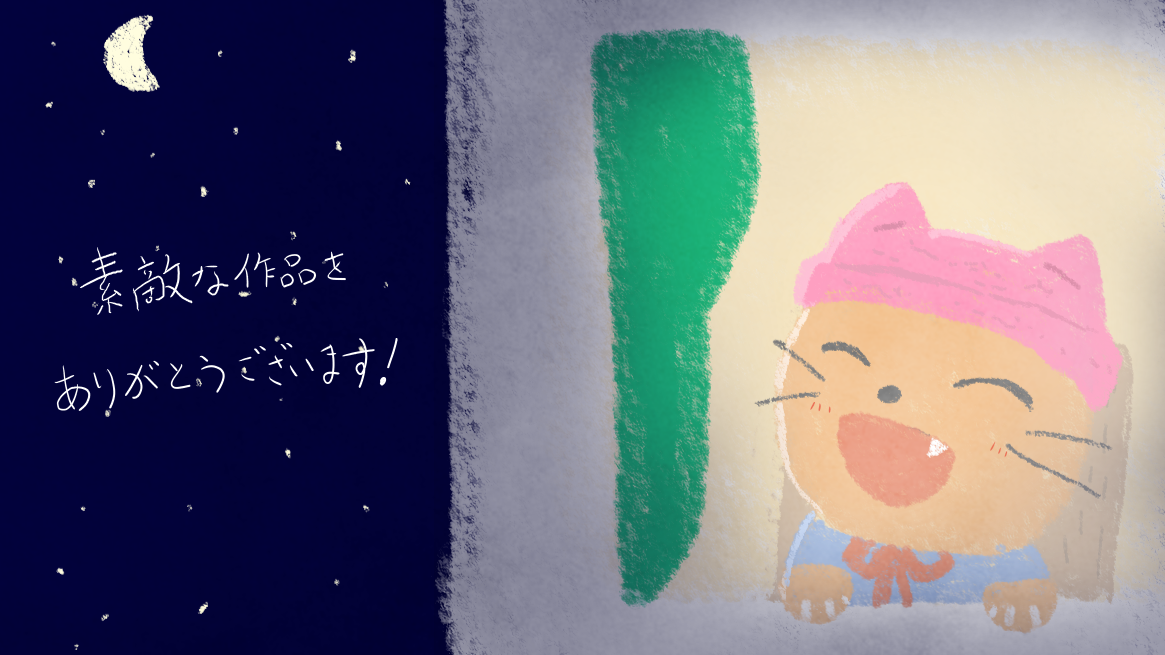夜の生きもの『ドット絵』に惹かれてプレイさせていただきました。 @ネタバレ開始 ノイズが入っているような不思議な音楽が良いですね。 1周がとても短いので、せっかちな私にはちょうどいいと思いました。 出てくる選択肢は主人公の性格?性質なのかなと(踏みにじるとか、なかなか……) 確かに『生きもの』はあまり怖くなかったのでほっとしました! @ネタバレ終了 素敵なゲームをありがとうございます。 -