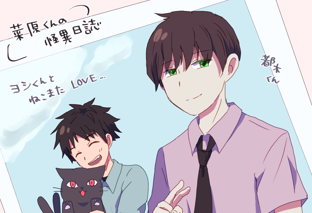 菜原くんの怪異日誌フェス前にプレイさせていただきましたので、FAをぶつけに参った。 どうかお受け取り下さい。 @ネタバレ開始 全員好きなんですが、集合絵が描けないため都木くんをチョイスさせていただきました。菜原くんをずっと見守ってきたとか尊い関係・・・。 あと、どうしても猫又くんが描きたかったので登場していただいた。 ドット絵の猫又ちゃんとヨシくんかわいかった・・・! @ネタバレ終了 素敵な作品をありがとうございました。 -