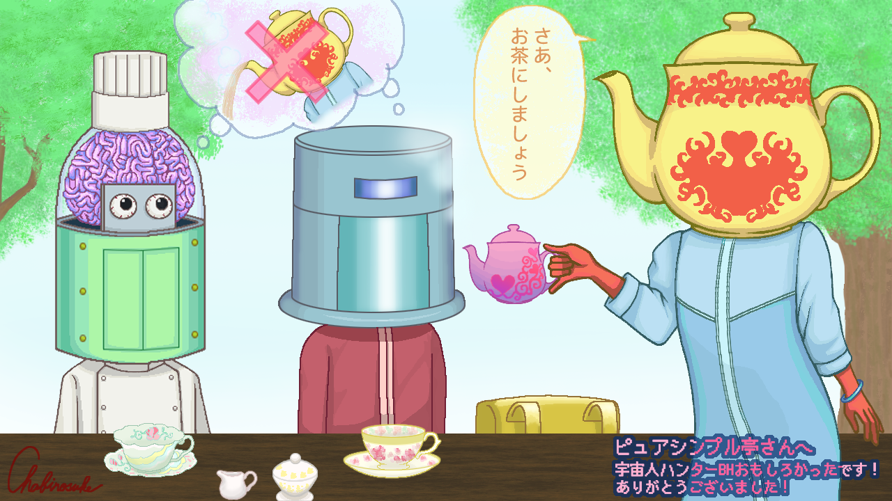 Cardiac tailorプレイさせていただきました。 ぬいぐるみを自分でデザインできる・・・! おもしろいゲーム性でした。 @ネタバレ開始 バッジも全部ゲットできました! 布の色やお洋服も全部かわいくて、色々試してしまいました。 エンド3がスキかな・・・! 頑なにドリンクを断るエンドも好きw 不思議でかわいい世界観に癒されました。 エンドによっては少し怖いけど・・・! @ネタバレ終了 素敵な作品をありがとうございました。 -