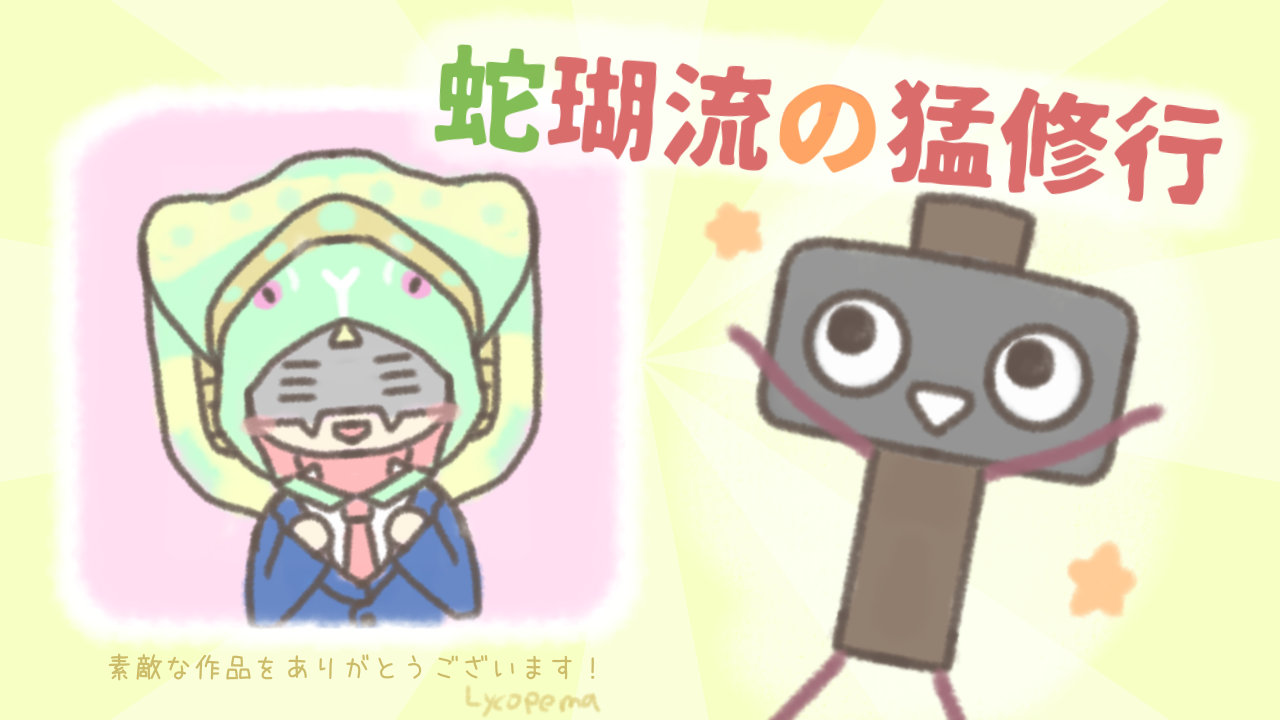 蛇瑚流の猛修行フェスが始まったので、改めてFAを送らせていただきますっ! 小ネタいっぱいのワクワクバトルに大興奮っ!! そして、ハンマーくんも大活躍!システム凄すぎます〜!! 素敵な作品をありがとうございます! -