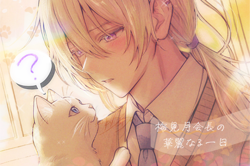 梅見月会長の華麗なる一日フェスが開幕されたので、改めてお邪魔します! 子猫になって、助けてくれた梅見月会長と一緒に自分の飼い主になってくれる人を探すお話です! 本編は色んなキャラと交流したり、あえて飼い主候補を拒否ったりとワチャワチャした雰囲気が楽しいですv おまけパートは、まさかの乙女ゲーな甘々なストーリー&イケボが堪能出来ます! そして会長宛ての恋文や川柳というランダム要素(!?)も充実しているので、色々な楽しみが方が出来る凄いゲームです…! FAはイチャラブ2ショットをお送りしますね! 素敵な作品をありがとうございます✨ -