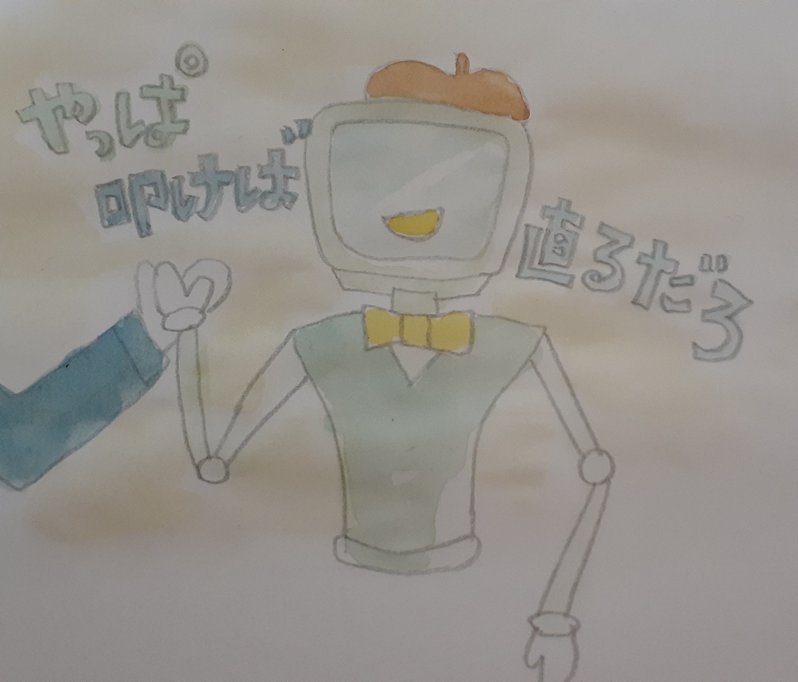 やっぱ叩けば直るだろ?仲良しコンビのお話かな、と思ってプレイしました~~ @ネタバレ開始 なんかいい感じに掃除して・・・というのがリアルでくすっと笑えます。 こういう何気ない言葉がすき! BKさんのご様子がおかしくなって、きたかと思ったところで なんという鋭いツッコミ!!!? 関西人? 関西人なの? 鮮やかな左手入りました――――っ!!! これはBKさんじゃなくても目が覚めそうですね また様子がおかしくなるBKさん。。。なんか、わるい薬でものまされちゃったんでしょうか。心配。 「置いて逝かれることもない」って・・・なんてこと、それで心を痛めていたのですか!!! 押さえていた本音がでちゃったんでしょうか。 そんないじらしいBKさんに容赦ないツッコミ!!! しかし、お写真を見て納得しました!! プロでした!!! いよいよおかしくなっちゃうBKさんに迷いますが、 でも変化は悪いことばかりでもないし、不変はいいことばかりでもないですし、 プロならばここは思い切ってやってやりましょう、 相方の責任を持ってこの手でバシッとな!!! いやあ、元に戻ってよかったです。 おしゃれファッションだと思ってたお帽子のせいだったとは・・・ そして、EDで二人でちゃんとお帽子選んでるのもホッコリしました。 もういっこのENDも、いつかはちゃんとジッカーさんが責任もって突っ込んでくれそうで、安心です。 可愛らしく、ちょっぴりブラックな楽しい作品でした! @ネタバレ終了 すてきな作品をありがとうございました~~ -