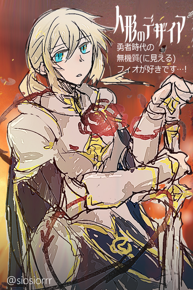 人形のデザイアプレイさせて頂きました。 物語終盤で次々明かされる、キャラたちの想いに心揺さぶられ…! @ネタバレ開始 鍵を選択したENDでは、まさかそんな展開が…!主従逆転…! 勇者時代のフィオが大好きなので、その「彼」が主人公を求めてくれることがとても嬉しくときめきました。 メリバENDの結末もすごくすごく好みでした。フィオの制服?恰好良い! 二つのENDを見ることで、フィオ側の主人公への想いも知れて、結局両想いだったとわかりハピエン厨に最高のゲームでした、素敵な作品をありがとうございます…!! 回想に出てきた騎士フィオが好きすぎるのでFA描かせて頂きました。(斧フィオとお茶給仕フィオと迷いましたが)(お墓に花を供えるイベントスチルも好きです) 次回作も楽しみにしております…! -