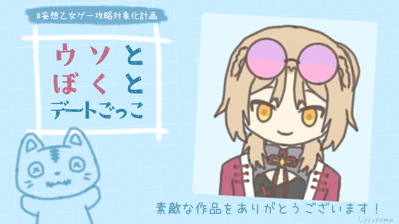 # 妄想乙女ゲー攻略対象化計画 ウソとぼくとデートごっこトキメキいっぱいの「アオハル」成分と、 スリルや不穏さ・ドキドキ感がたまらない「キャンダル」要素を 同時に摂取できちゃう素敵な作品っ!! そして、夏緒くんのチャイナ服姿もっ!! @ネタバレ開始 うひょぉ!!ボイスもついて豪華すぎます〜っ!! いろんな夢高生の皆さんにも出会えてワクワクでしたっ!! キュートなパンダ饅頭もキラッキラな質感のタルトも とっても美味しそうで魅力的です〜! 夏緒くんの抱えている思いや悩み、 それを「ウソ」として一人で背負わなければいけなかった苦悩… ヒロインちゃんに秘密を打ち明けるシーンが心に強くギュッときて、 そこからのアツい展開にテンション上がりっぱなしでしたっ!! まるでドラマを見ているみたいっ!! そして観覧車の上でのラストのシーン、めっちゃキュンキュンしちゃいましたっ!! @ネタバレ終了 夏緒くんとの特別な時間を楽しめる、素敵な作品をありがとうございました! -