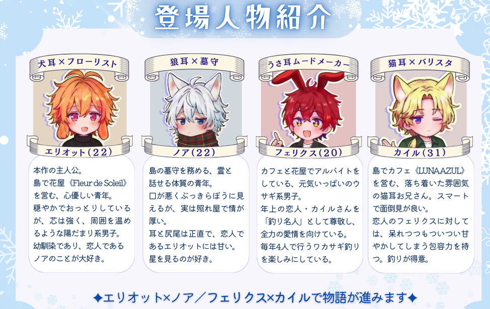 ↓ゲームに登場するキャラクターの詳しい紹介はこちらから❄(個人サイトに飛びます)