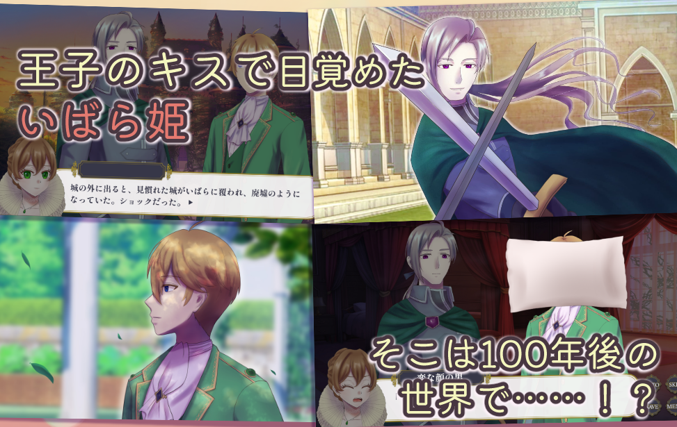 王子のキスで目覚めて始まる、いばら姫(眠れる森の美女)パロディのファンタジー恋愛ノベルゲーム