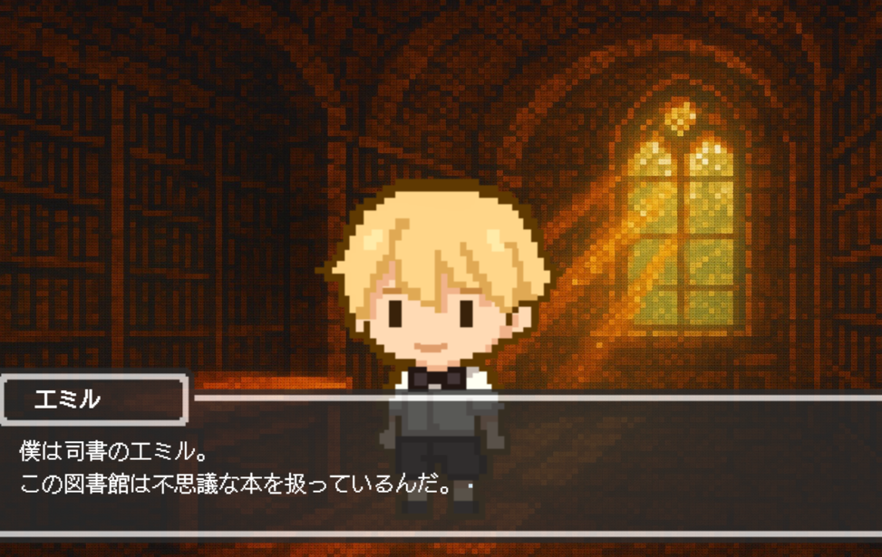 司書エミルと図書館の迷い子 web Language English中文(简体)中文(繁體)한국어РусскийDeutschFrançaisEspañolPortuguês日本語 プレイ時間:15分 評価 1 目覚めた場所は、見知らぬ不思議な図書館――。 探索するのは、“本の中”に広がる小さな世界。 3つのしおりを集めて帰り道を見つけよう。 ---------------------------------------- ノベル謎解きゲームです。 お手元にメモを用意していただくと進めやすいと思います! 音あり推奨です。 AI使用範囲:背景素材、キャラクターのドット絵 使用ツール:チャットGPT すべて表示折りたたむ ゲーム実況OK AI生成使用 謎解き 脱出ゲーム コインで作品を応援する ブラウザでプレイゲームをプレイする windowsPC(Windows)版をDL starempty評価 star star star star star heartempty追加 twitter共有 コメント 応援コメント・ファンアートを気軽に投稿しよう! 投稿するには、ノベルゲームコレクションへの参加が必要です。 ノベルゲームコレクションへ参加する もっと見る