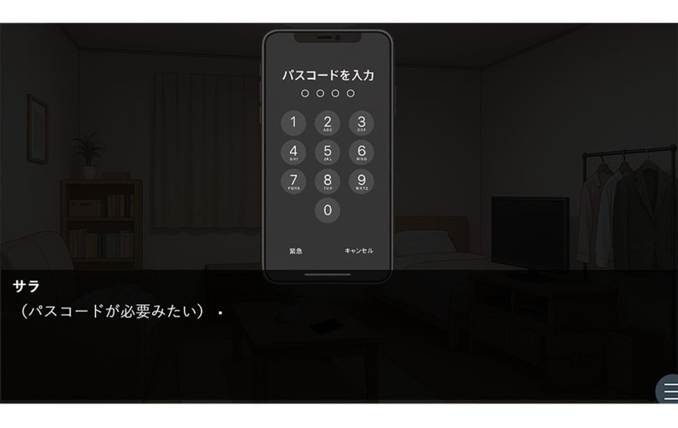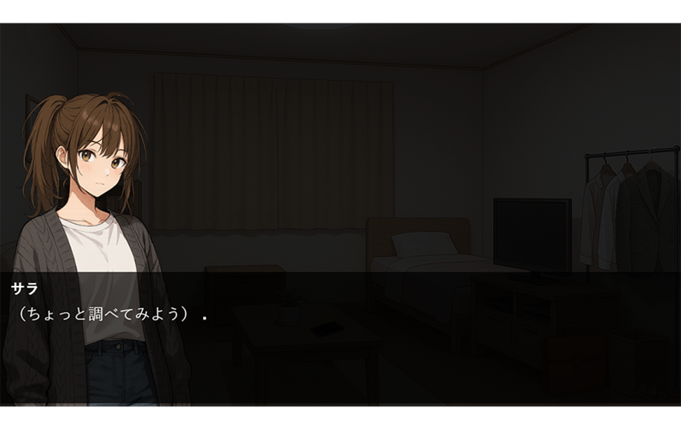 ※部屋の探索はストーリーの解釈を深めるものなのでできればいろんな場所を調べていただけると嬉しいです。