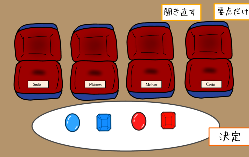 博士に感づかれないよううまいこと聞き出したヒントをもとに、正しい箱に宝石を入れましょう。