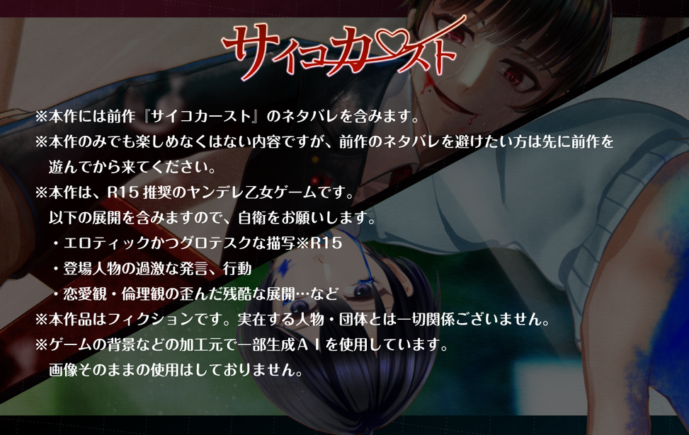 ・本作は、R15推奨のヤンデレ乙女ゲームです。