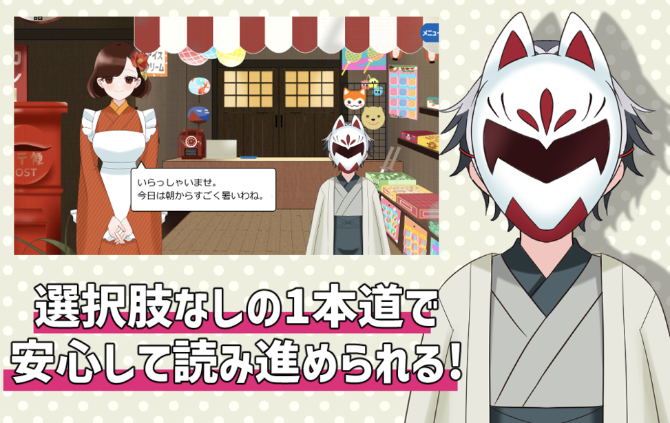・分岐なし、選択肢なし、エンディングは1つです。
