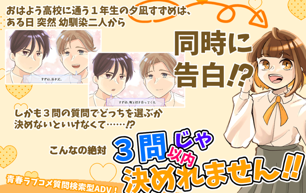 ✨幼馴染二人から同時に告白!? でも3問以内で結論を出さないといけなくて……!?✨