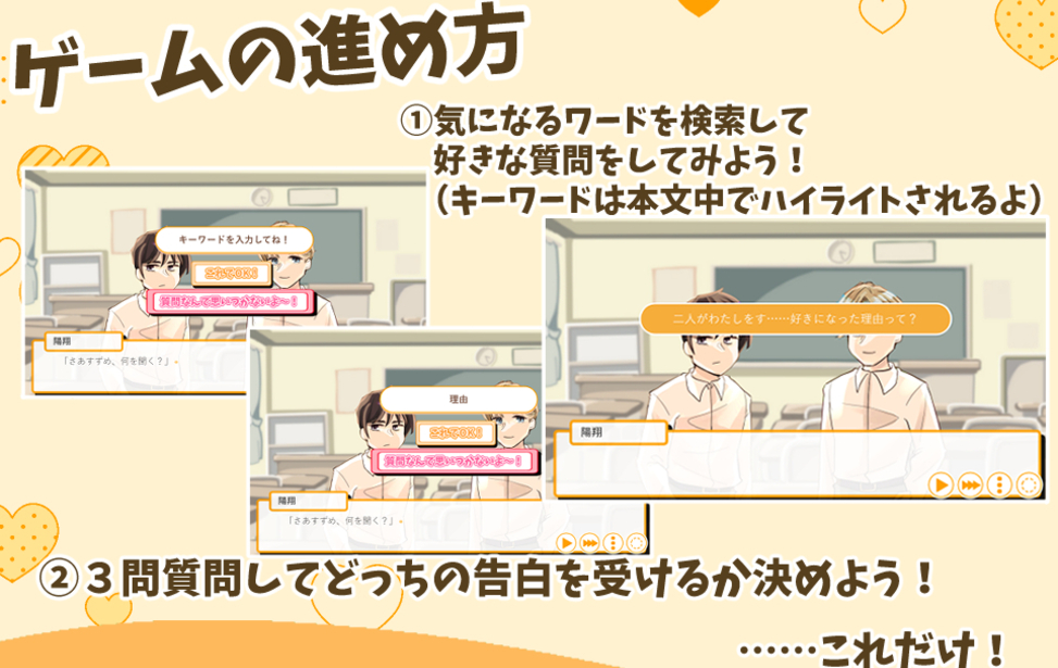② 3問質問したらどっちの告白を受けるか決めよう!