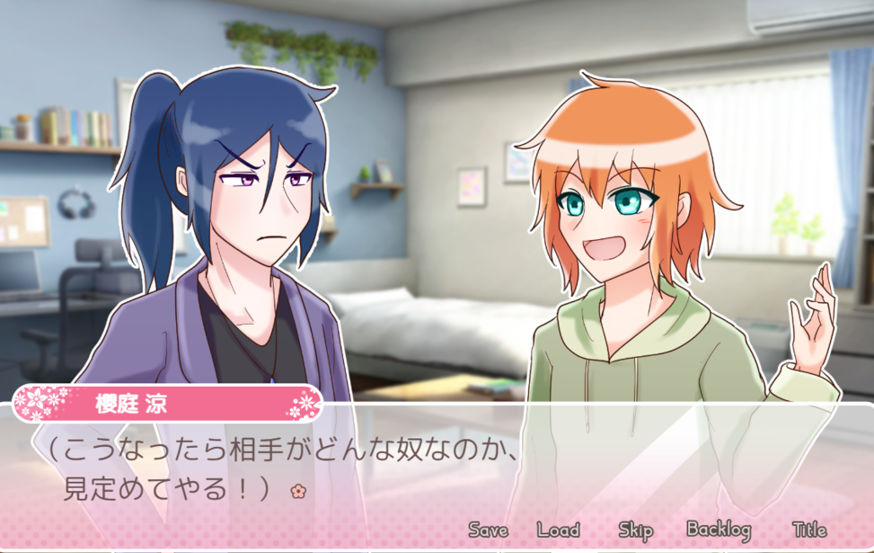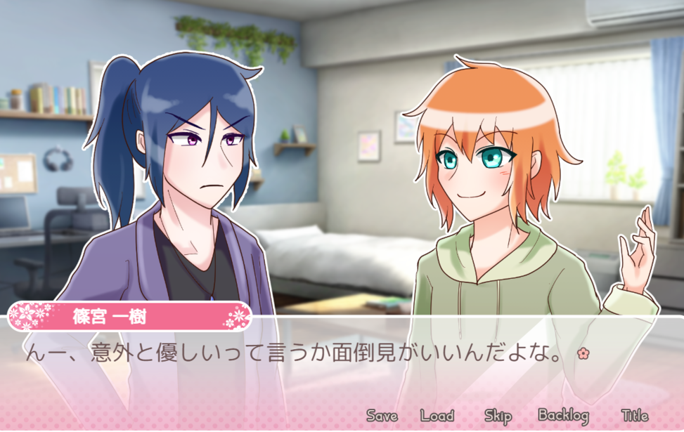 好きなヤツから恋愛相談された web Language English中文(简体)中文(繁體)한국어РусскийDeutschFrançaisEspañolPortuguês日本語 プレイ時間:15分 大学生の櫻庭涼(さくらば・りょう)は同級生の篠宮一樹(しのみや・かずき)のことが好き。 しかしある日、一樹から「気になっている相手がいる」と恋愛相談を持ち掛けられ……!? サクッと読めるハッピーラブコメです。エンディングは2種で、最後の選択肢でのみ分岐します。 お借りした素材は作中の「クレジット」に記載しています。 すべて表示折りたたむ ゲーム実況OK BL ラブコメ コインで作品を応援する ブラウザでプレイゲームをプレイする windowsPC(Windows)版をDL starempty評価 star star star star star heartempty追加 twitter共有 コメント 応援コメント・ファンアートを気軽に投稿しよう! 投稿するには、ノベルゲームコレクションへの参加が必要です。 ノベルゲームコレクションへ参加する もっと見る