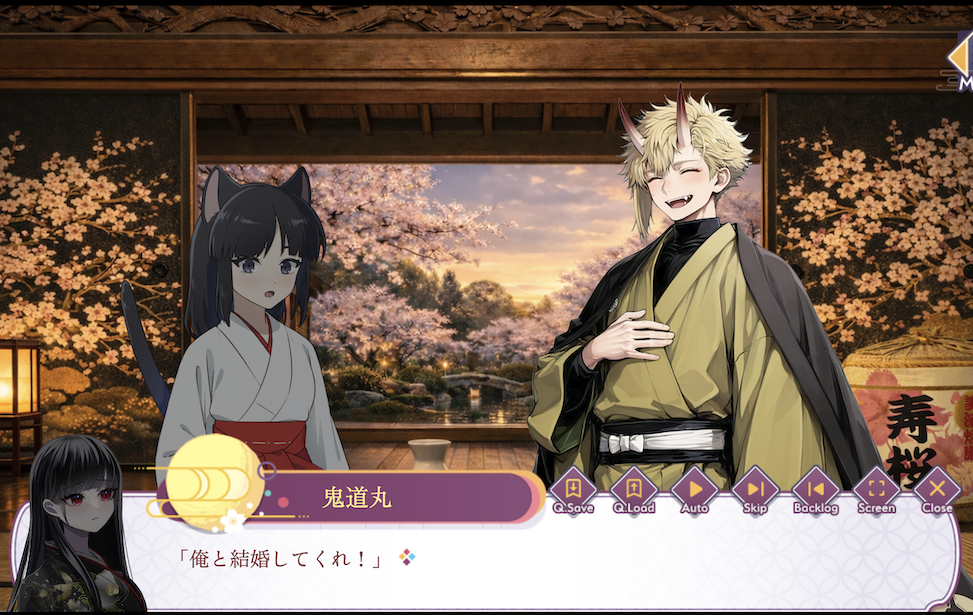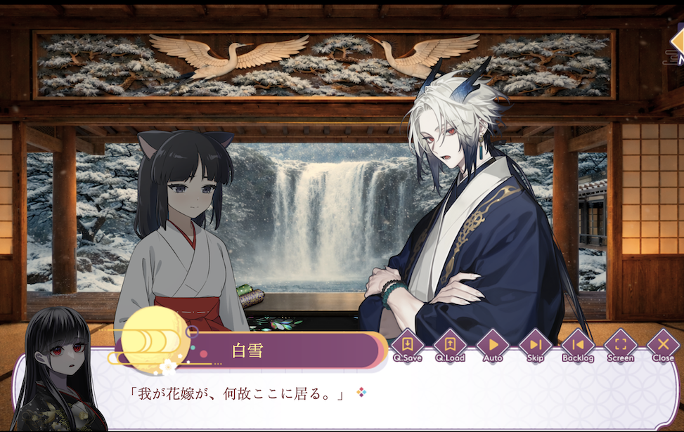 妖怪と花札をテーマにした日本昔話風乙女ゲーム(異類婚姻譚)です。花札のミニゲームがあります。*PG12相当のホラー・ヤンデレ表現含みます!*祟りを鎮めるために土地神の生贄に差し出された主人公(名前変換可)が、黒猫の助けを借りて妖怪との花札勝負に挑みます。