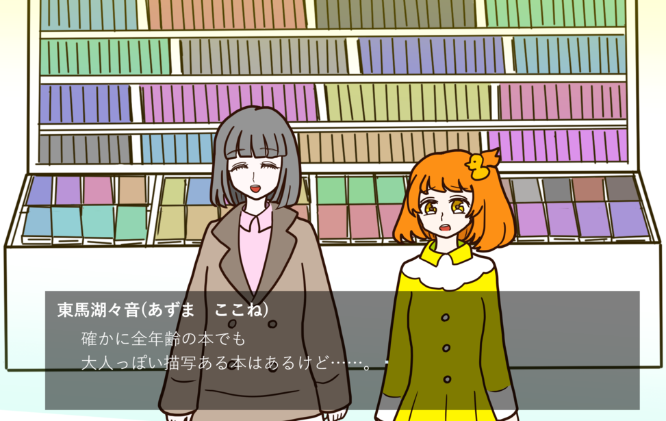 ちょっと○○な本を買いに行こう! web Language English中文(简体)中文(繁體)한국어РусскийDeutschFrançaisEspañolPortuguês日本語 プレイ時間:15分 異世界同士を繋ぐWorldcross(ワールドクロス)で女の子達がちょっと○○な本を買いに行くだけの日常短編ものです! プレイ時間は15分ほどで選択肢や分岐はなく一本道になっています。 女の子達の仲良し描写多めです。 実況(収益化可)、ファンアート、感想など大歓迎です。 特に感想いただけると喜びます! すべて表示折りたたむ ゲーム実況OK 短編 日常 異世界 コインで作品を応援する ブラウザでプレイゲームをプレイする windowsPC(Windows)版をDL starempty評価 star star star star star heartempty追加 twitter共有 コメント 応援コメント・ファンアートを気軽に投稿しよう! 投稿するには、ノベルゲームコレクションへの参加が必要です。 ノベルゲームコレクションへ参加する もっと見る