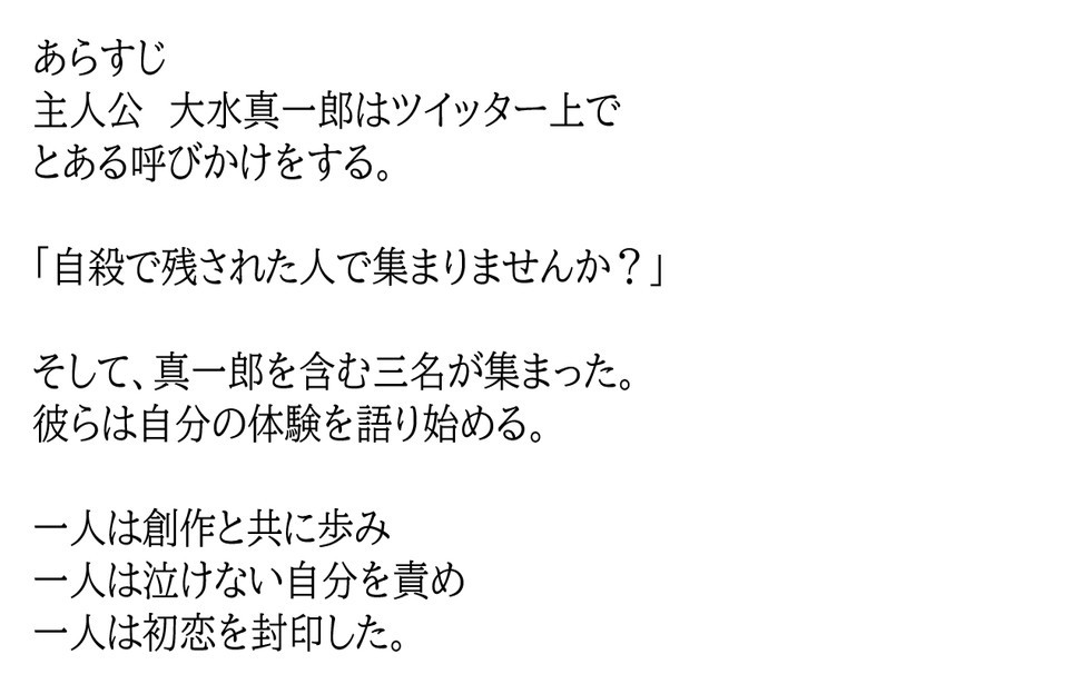 主人公 大水真一郎(おおみずしんいちろう)はツイッター上でとある呼びかけをする。