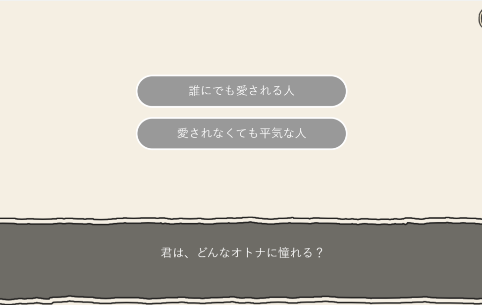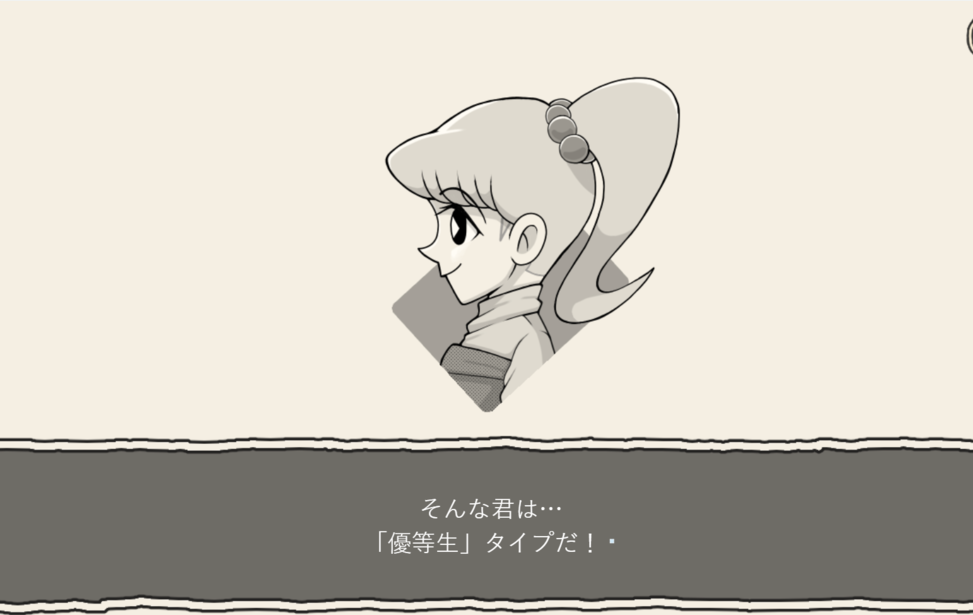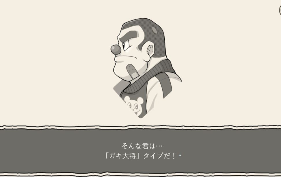 「優しき少年」「優等生」「ガキ大将」「キザな坊ちゃま」のうち、あなたに近い性格が出力されます。