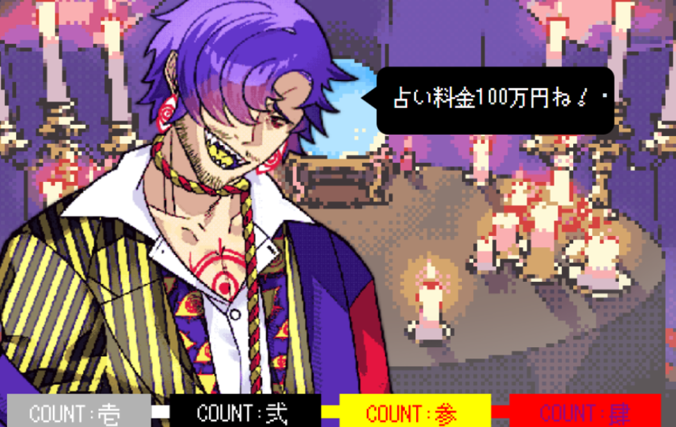 “100%当たる占い屋”を訪れたアナタが店主のおじさん「ミロク」とおしゃべりするダークポップノベルゲーム。